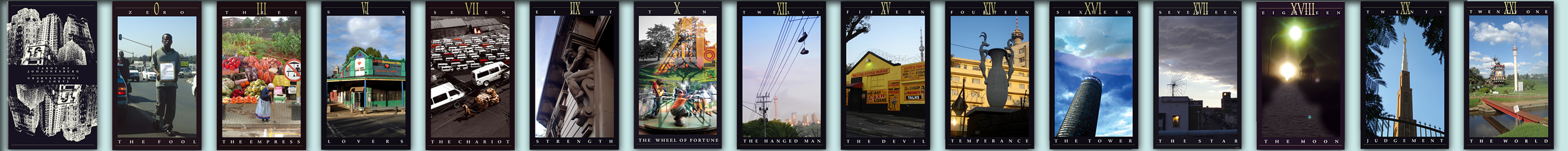 The Tarot of Johannesburg (2008) This collection consists of the 22 cards of the Tarot's major arcane. This particular set draws parallels between the mythological symbolism of the traditional tarot and present day symbolism manifest in urban Johannesburg.